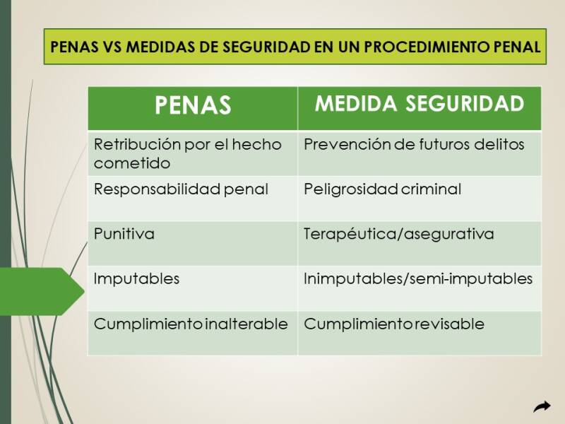 DIFERENCIA: PENAS Y MEDIDA DE SEGURIDAD en un procedimiento penal. (Ver cuadro explicativo parte superior)